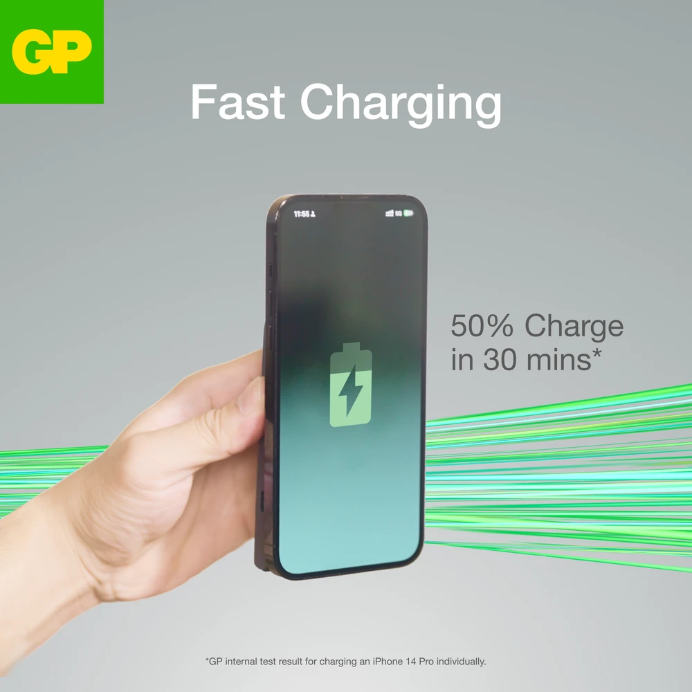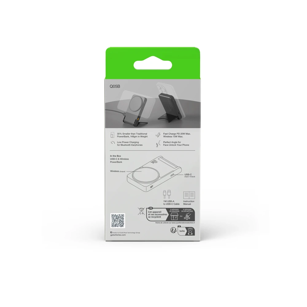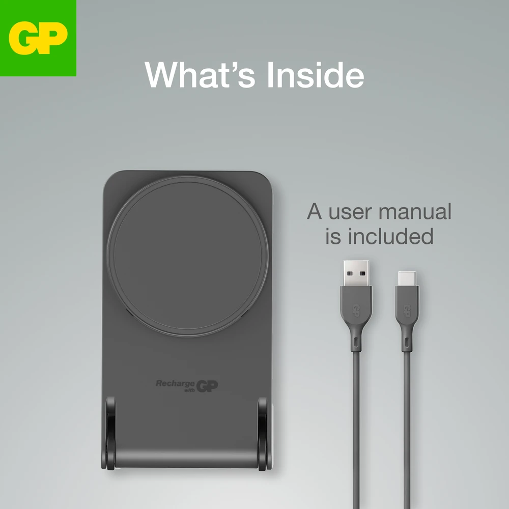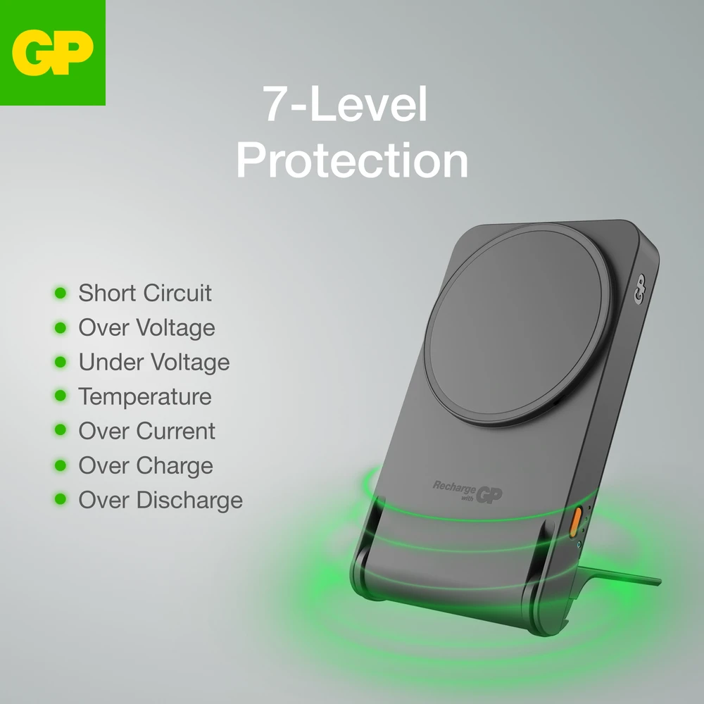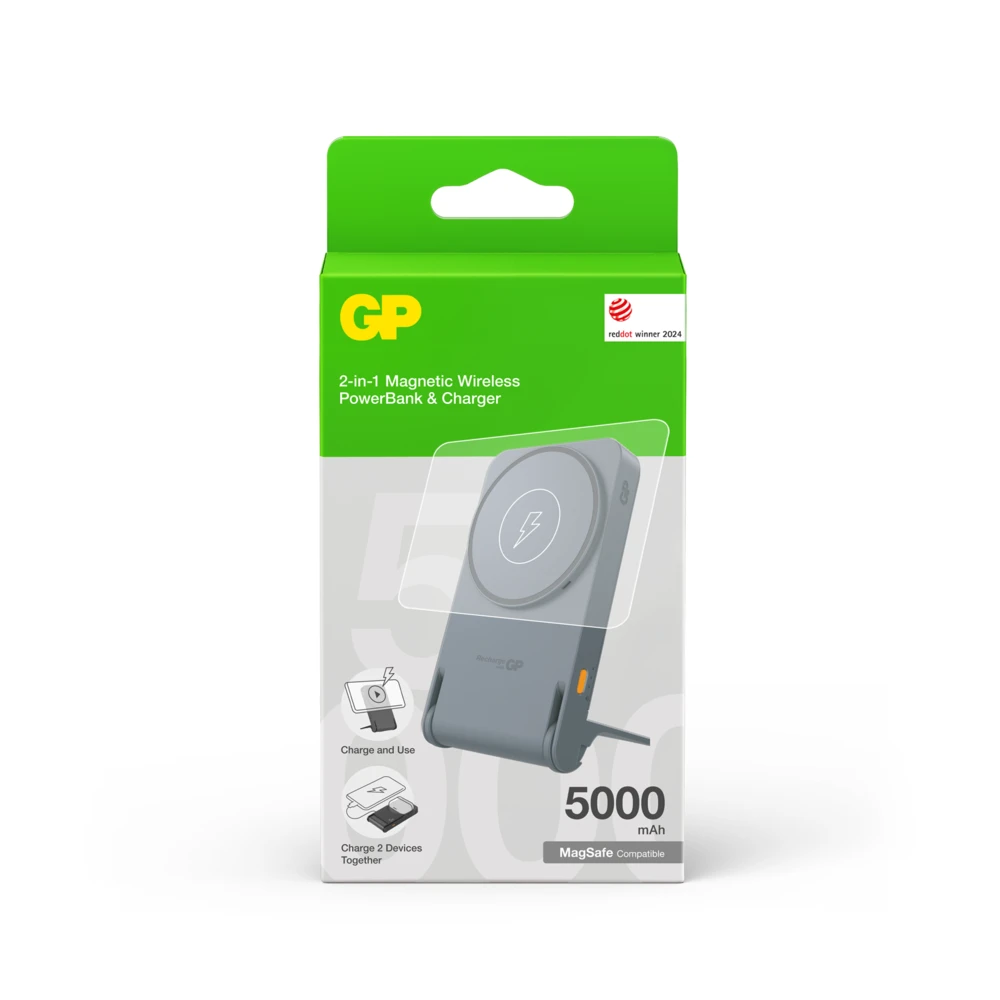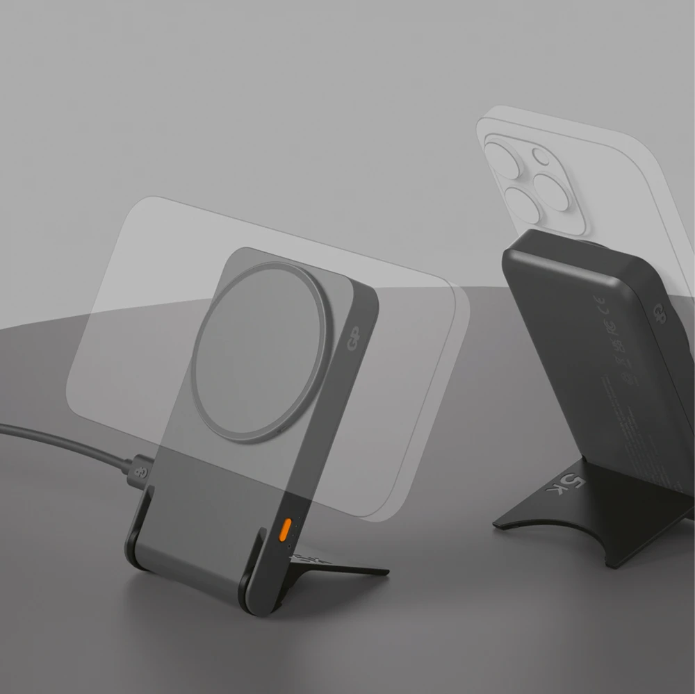 Experience convenience and functionality with the GP Magnetic Safe – a small, lightweight 2-in-1 power bank with wireless charging and a foldable stand. The built-in magnetic ring easily attaches to your iPhone for quick and efficient charging, compatible with both Qi charging and MagSafe cases.