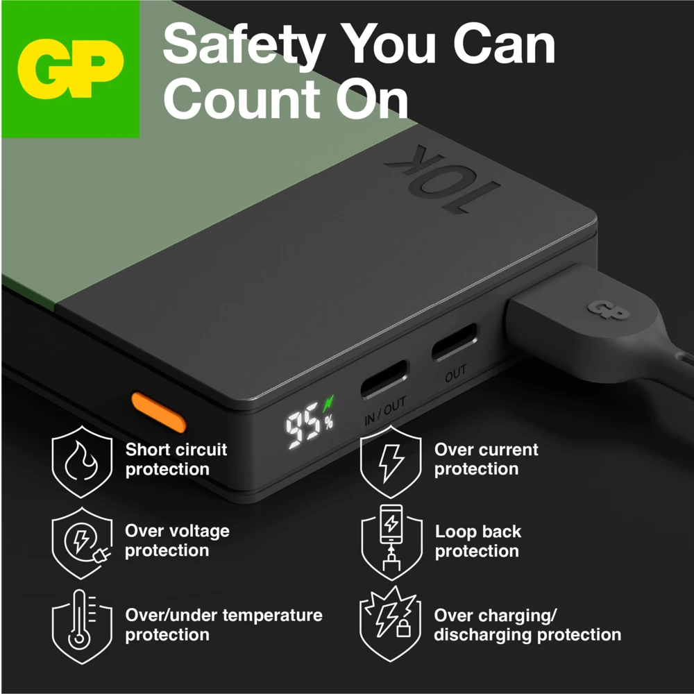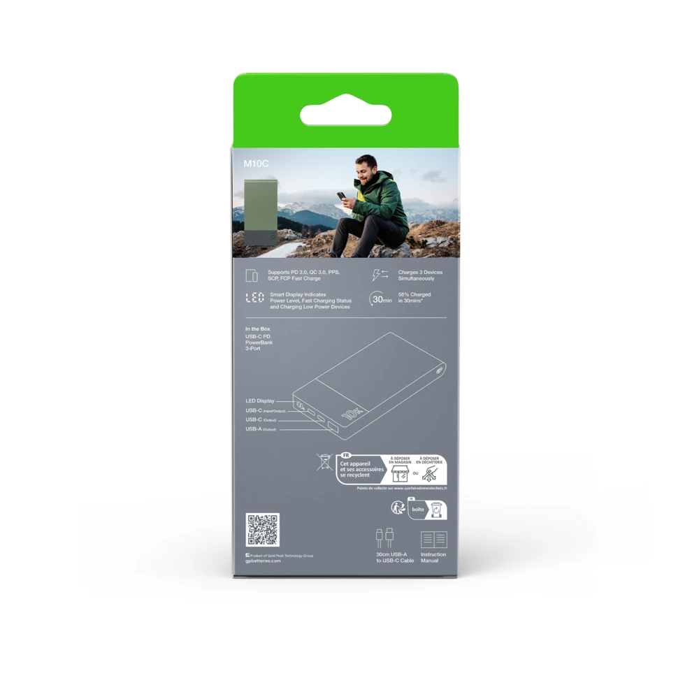 M2+ PowerBank charges your phone to more than 58% in just 30 minutes! A fully charged M2+ PowerBank is enough for two charges for your smartphone. The battery level indicator in percentage clearly shows the remaining battery. With its six different safety features and robust construction, this powerbank will be your best sidekick for years to come.
