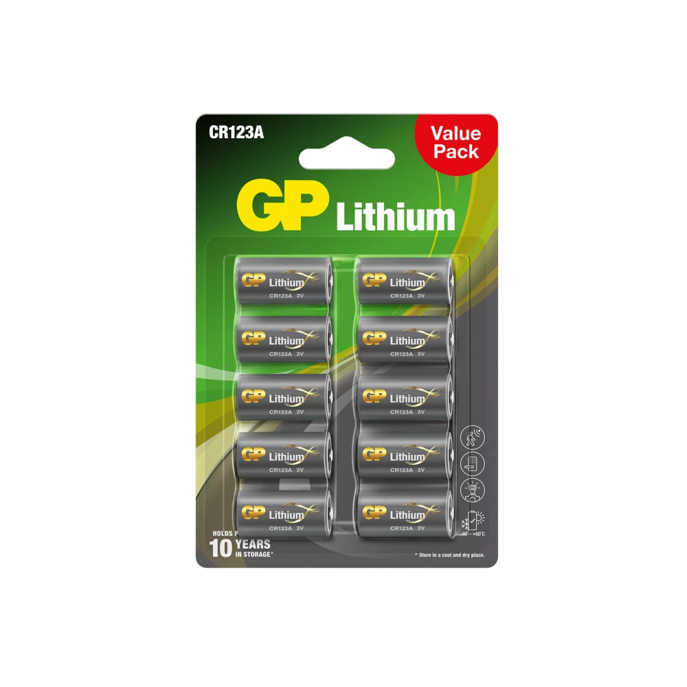 The GP CR123A battery is a lithium battery specially designed for cameras, sensors, door locks, flashlights and smart home products, among other things.