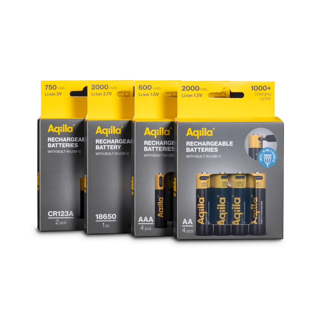 Aqiila Rechargeable USB-C Batteries put fresh power in your pocket wherever you are. No bulky chargers, no hunting for outlets, just plug the USB-C cable directly into the battery and charge on the go. The batteries gives you over 1000 charging cycles, and a reliable performance from -10 °C to +50 °C. The quick charging times ensures you’ll never be left powerless in the outdoors again. Whether it’s headlamps, GPS, cameras, or radios, Aqiila makes sure your adventure keeps going.
