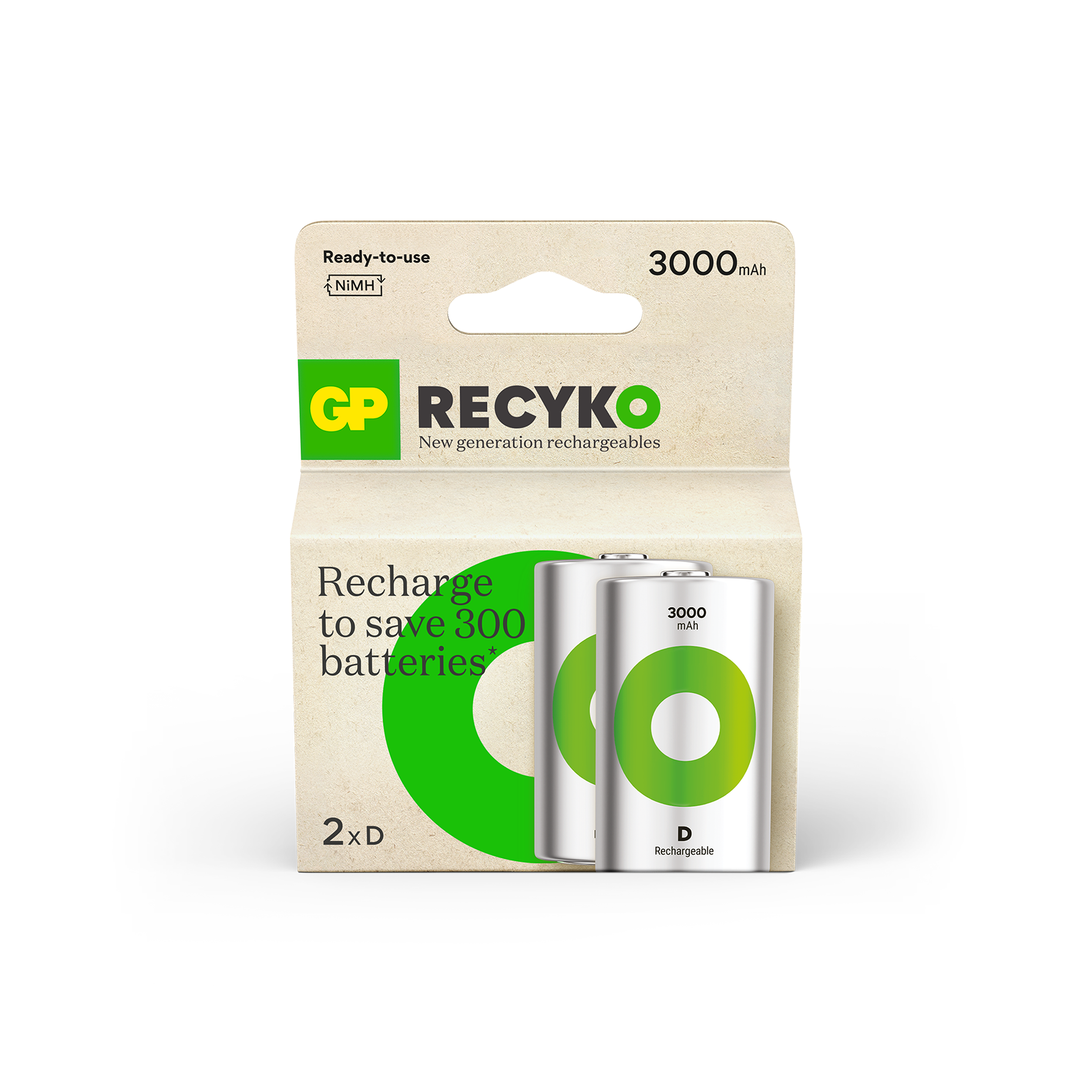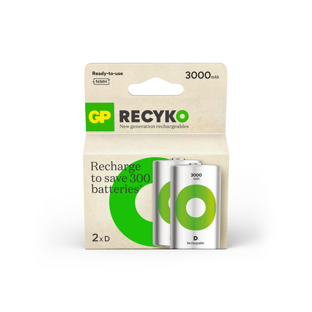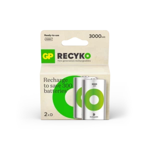 The Recyko D 3000mAh battery is a powerful rechargeable battery designed for your everyday use. They are charged upon purchase and ready to use right out of the box. Unlike disposable batteries, ReCyko can be used at low temperatures, even down to - 20°C. Over 90% of the battery, including packaging, is recyclable.