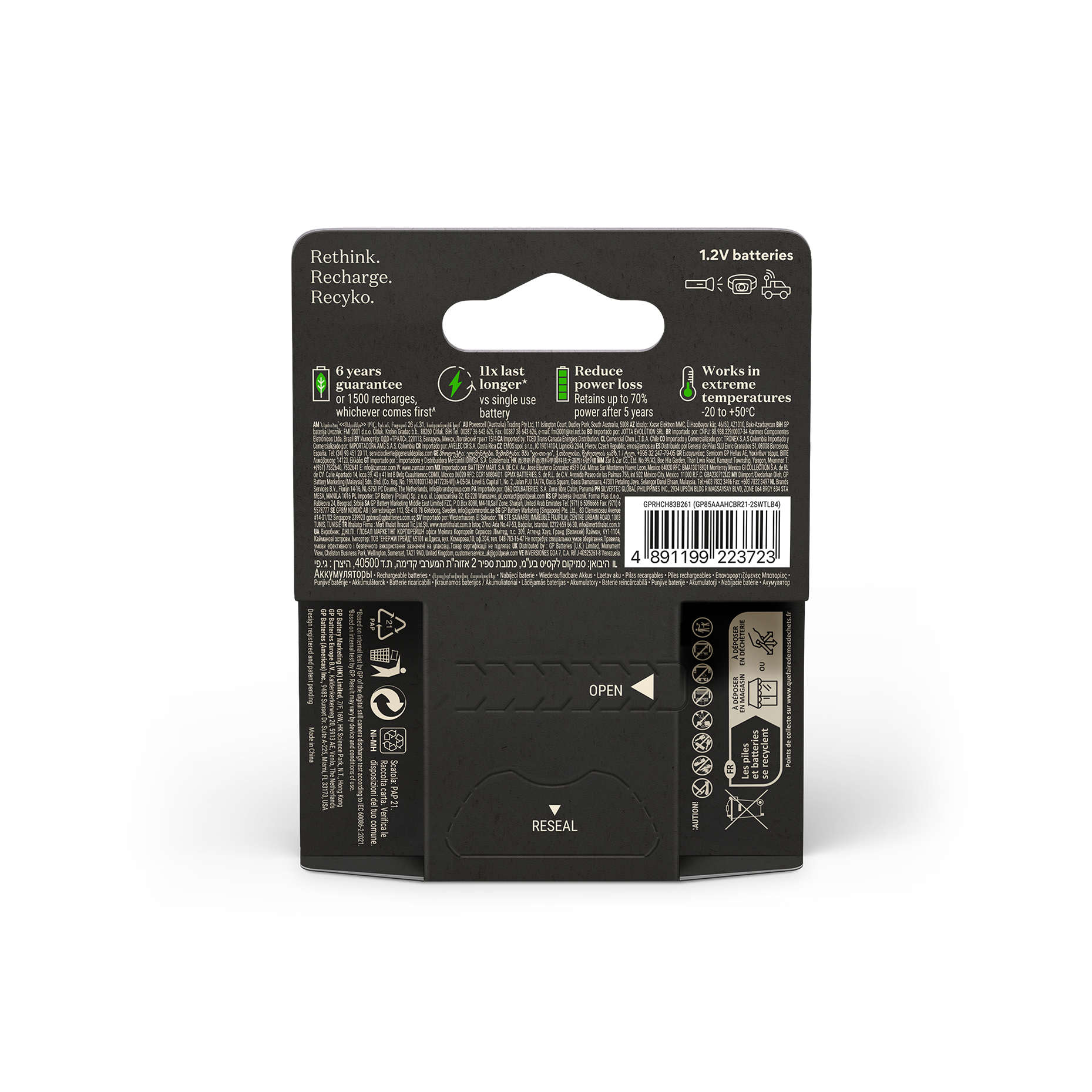 Introducing the new, advanced ecosystem of GP ReCyko rechargeable batteries, battery chargers and charging docks. With its optimal performance, smart features and stylish design, the new range will help you dispense with thousands of disposable batteries - putting less pressure on the environment and your wallet.