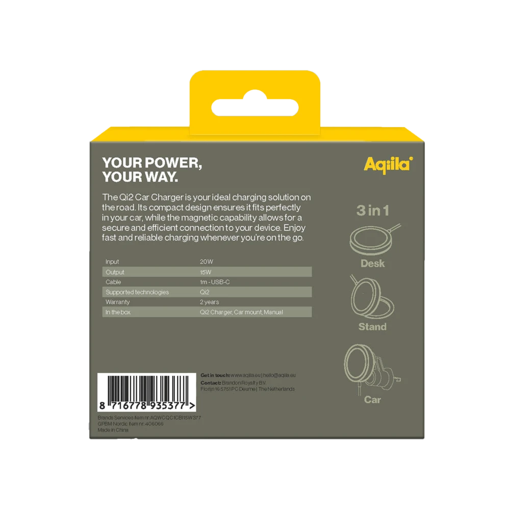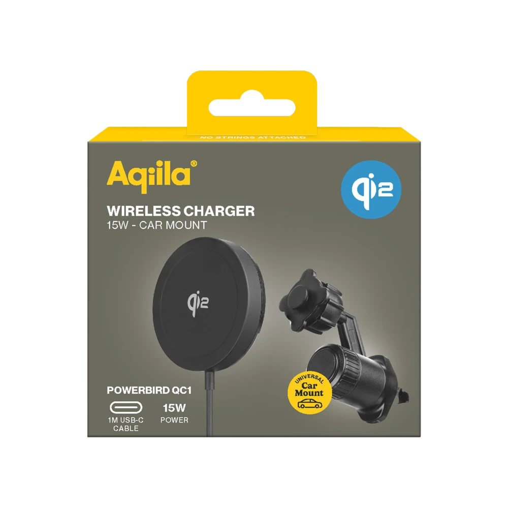 Aqiila Chargebird QC1 Qi2 Wireless Charger with Car Mount – 15W, MagSafe Ready