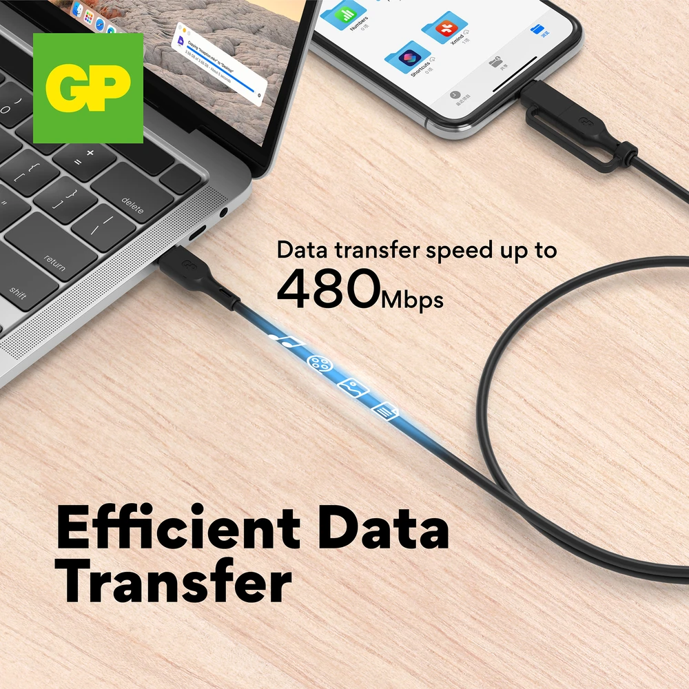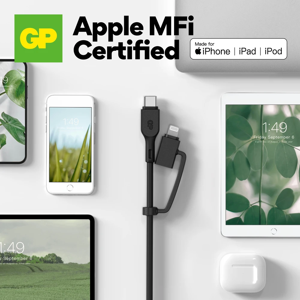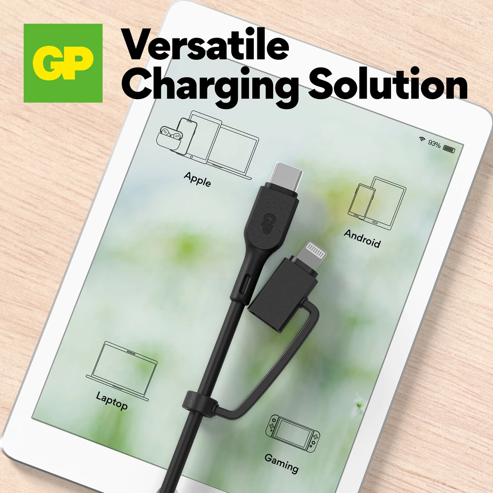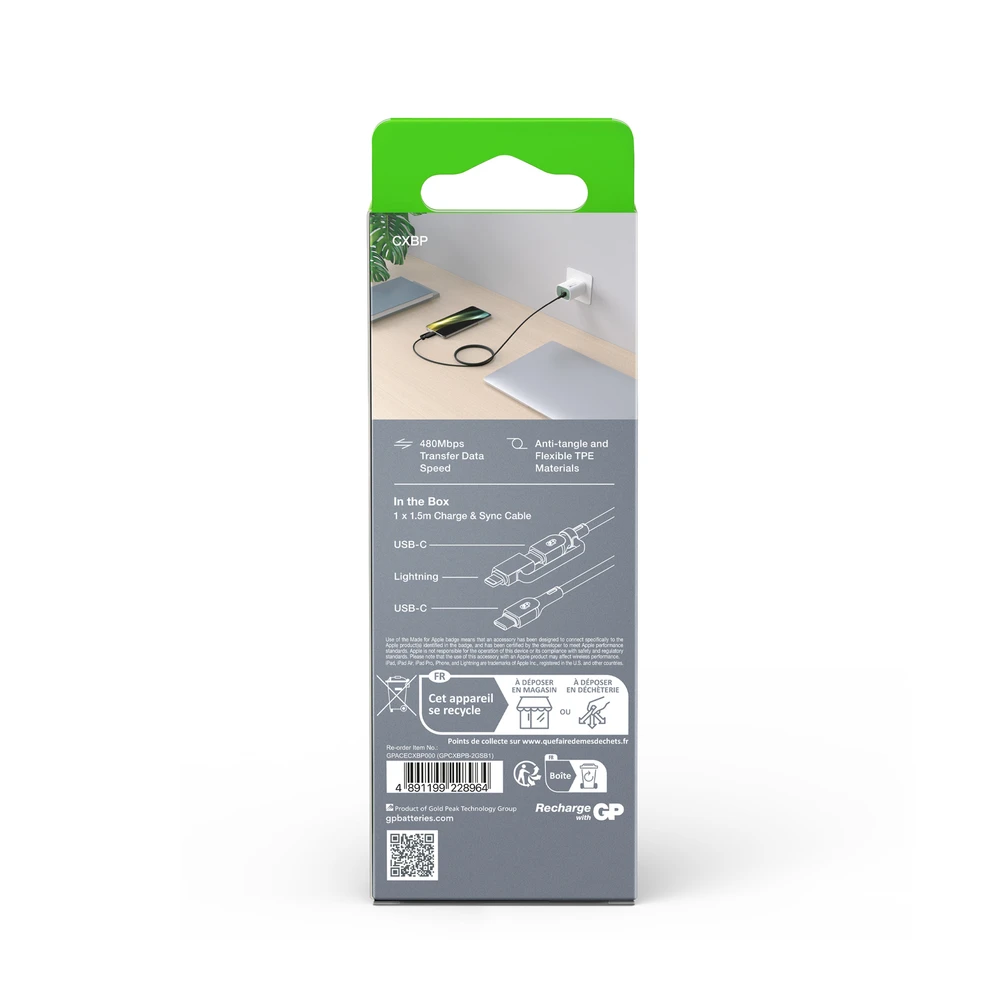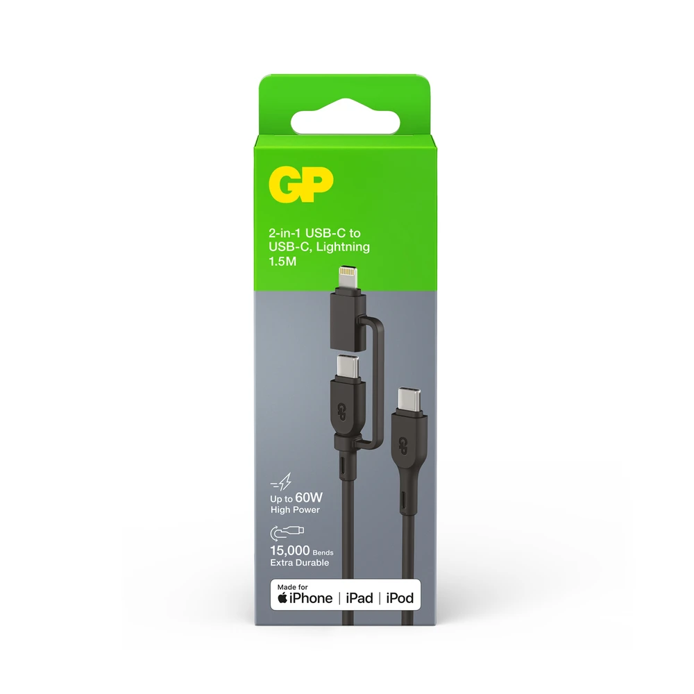 GP 2-in-1 USB- cable CXBP with USB-C to C + Lightning adapter 60W 1,5m