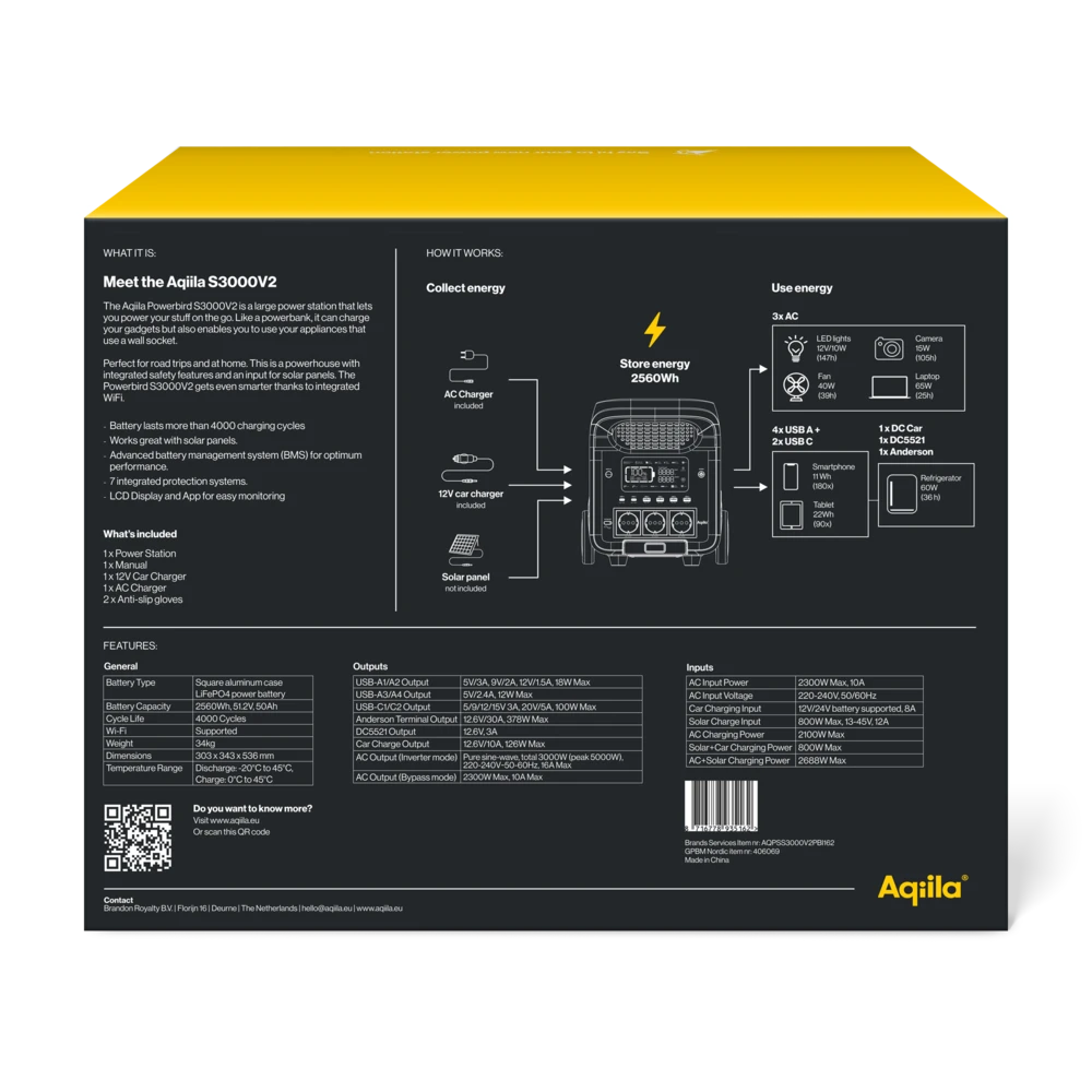 3000W that can peak up to 5000W. The LiFePO4 battery delivers 2560Wh with 4000 charge cycles. 1.7h Fast Charging. Low working noise of only 30dB.