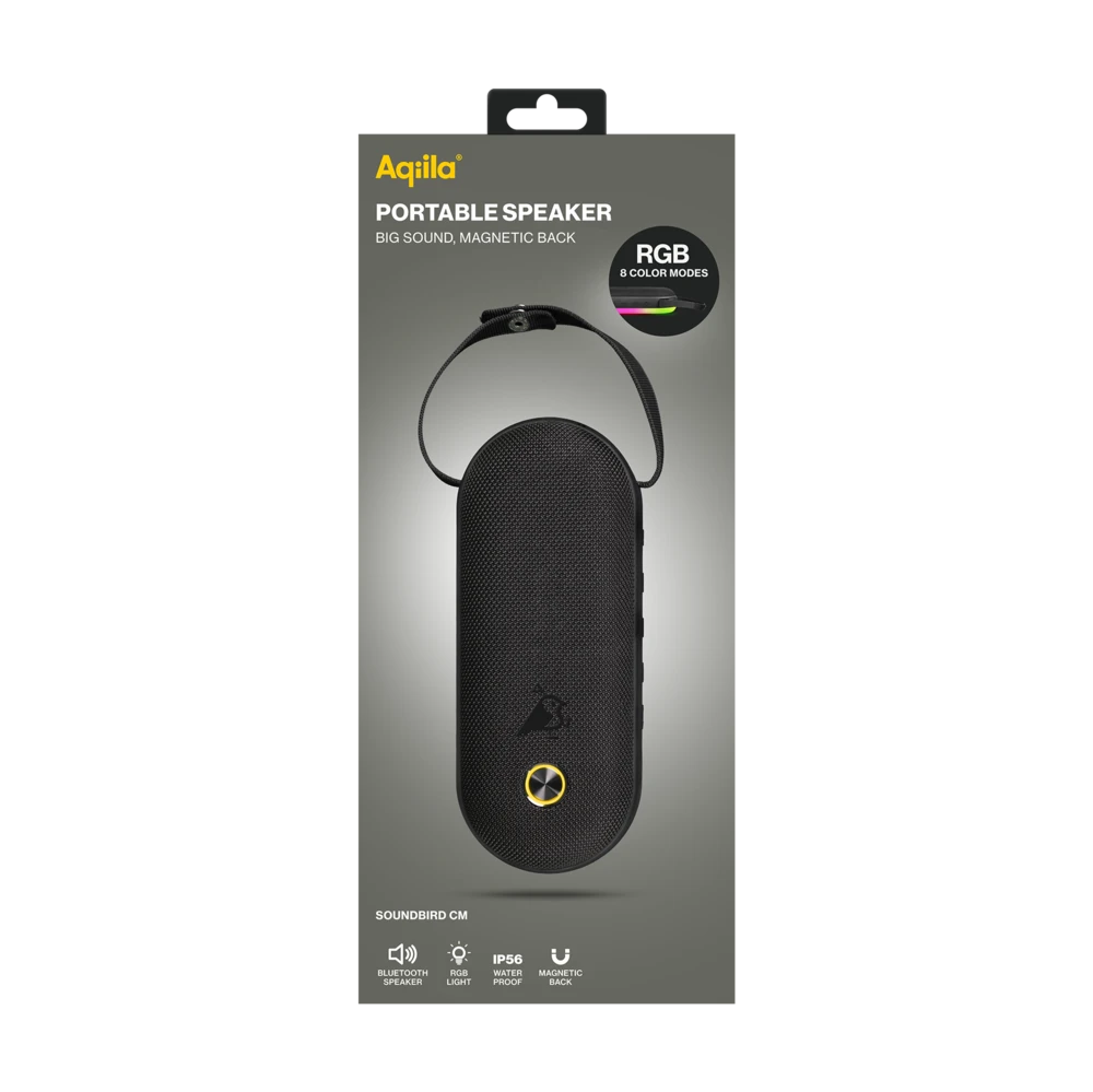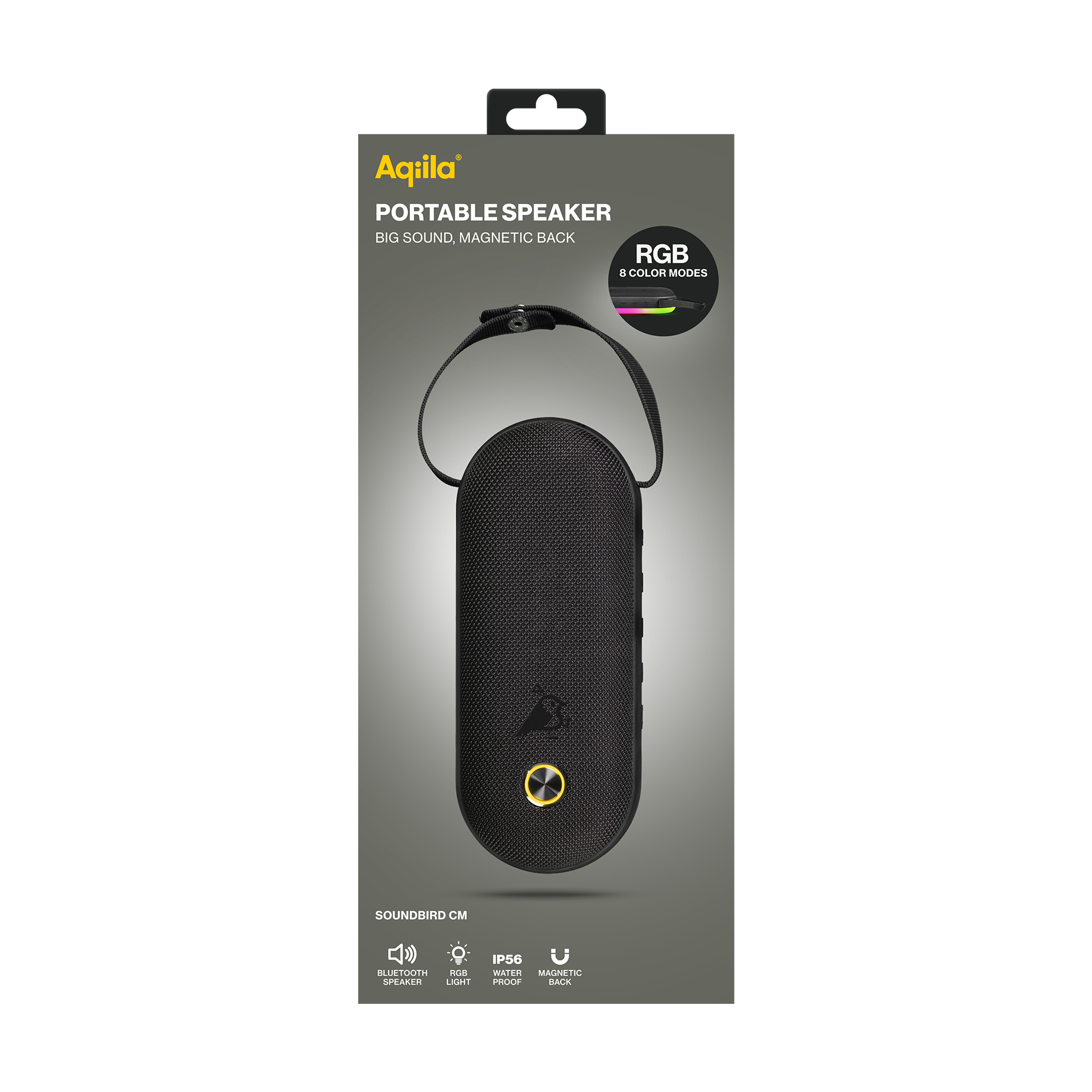 The Soundbird CM isn’t just a portable speaker, it’s your go-anywhere sound companion. With 30W stereo audio, a magnetic back for easy placement on metal surfaces, and a built-in RGB light show with 8 modes, it’s made for moments that need both volume and vibe.• 30W Stereo Sound – Dual drivers deliver crisp highs and deep lows for powerful, room-filling sound.• Magnetic Back – Snap it to any metal surface and let the music stick with you.• RGB Light Show – 8 colorful lighting modes to match your mood or party style.• Multi-Speaker Sync – Pair up to 100 Soundbird CM speakers for an epic surround experience.• Water & Dust Resistant – IP56 protection keeps the music going, rain or shine.• Integrated handle - Grab and go with ease