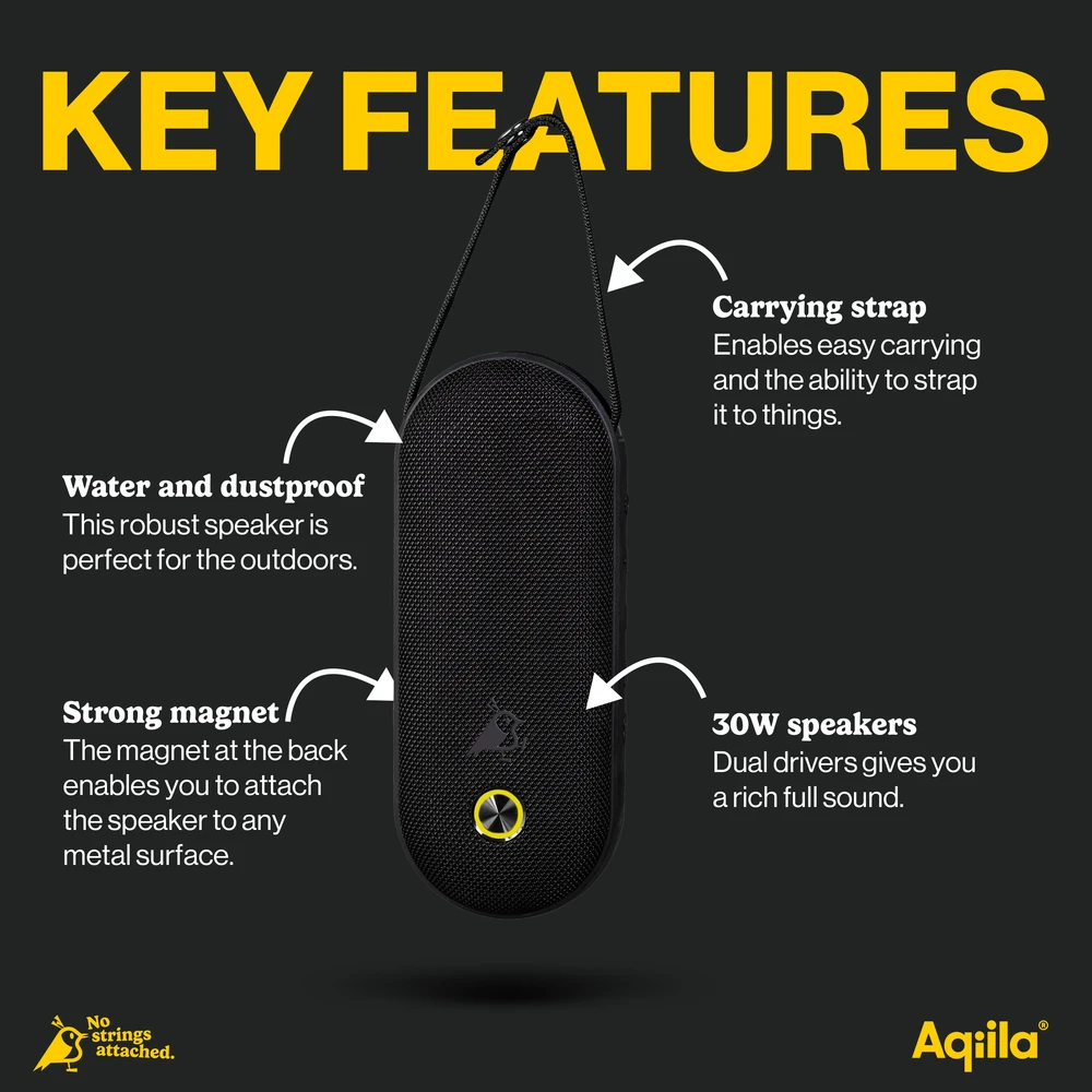 Powerful 30W portable speaker with magnetic back, 8 RGB light modes, and multi-speaker sync. Waterproof, dustproof, and robust enough for anywhere the music takes you.