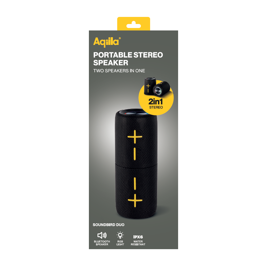 The Soundbird DUO takes portable sound to the next level. Bound together by magnets, this compact speaker twists apart into two wireless speakers, giving you true stereo separation and immersive audio on the go.