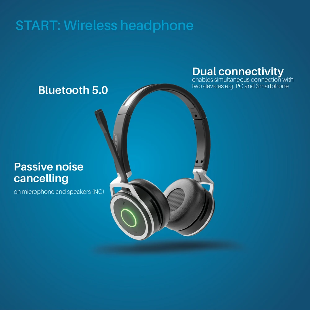 START Wireless headset offers a wide range of benefits that enables professional communication. These include a noise-cancelling microphone with noise suppression for crystal-clear call transmission, HD super wideband audio speakers for a voluminous sound in HIFI stereo and high-quality workmanship for optimum wearing comfort.