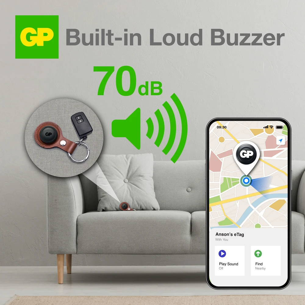 The GP eTag makes it easy to keep track of your belongings – perfect for frequent travelers, tech enthusiasts, or anyone who wants to keep track of their family's possessions. MFi-certified and compatible with Apple's "Find My" app, the eTag provides precise location tracking and strong privacy protection. Activate reminders for lost items and quickly locate what you've forgotten. It also works great with Apple accessories.